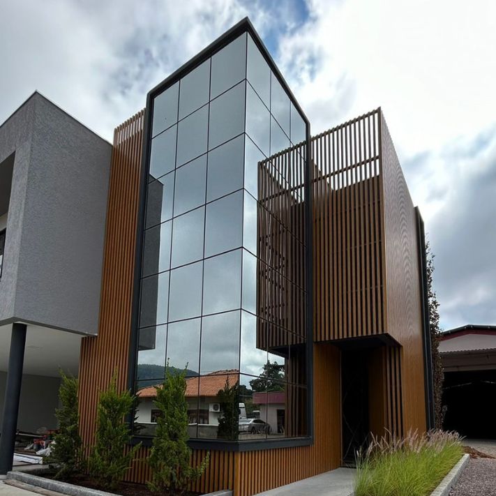 Nossos brises de alumínio modernos oferecem controle de luz e privacidade, além de durabilidade contra as intempéries. A solução perfeita para equilibrar luminosidade e estilo.